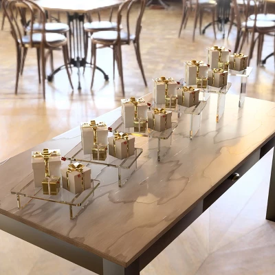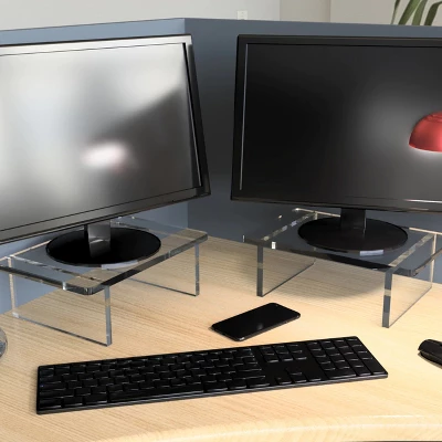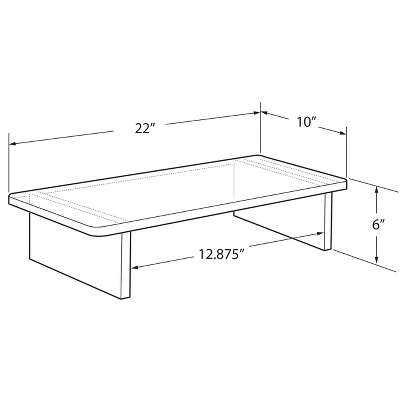 Azar’s Deluxe series of Clear Acrylic Risers are made of high quality 1/2 thick polished acrylic. The risers are functional as well as elegant and will compliment any décor. These risers are perfect for your home or office to elevate your computer and create an ergonomic and luxurious work space while maximizing desk space. Placing your computer or laptop at the right height for you, helps to prevent neck pain and can improve neck posture. There are bumpers on the bottom of each corner leg to prevent sliding or scratching of surfaces. These risers add a touch of fancy and uplift any item that is placed on them. Also perfect for catering weddings, corporate events, and parties. Create a beautiful buffet or dessert table in your home or special event. A holiday must have! Available in 11 different heights to meet your specific needs. No Assembly Required. Packed 1 per Box. Sold in Multiples of: 1 Material: Acrylic Overall Measurement: 22W x 10D x 6H Color: Clear Material Thickness: .5 Thick Weight Capacity: 85 pounds
