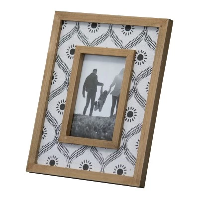 A unique material combination paired with an exclusive design from Foreside Home & Garden make this 4×6 photo frame the perfect addition to your traditional home décor. Two natural wood borders frame a white canvas inlay printed with a block print inspired floral pattern. The mixture of wood and fabric create a textural option to display your favorite photos. The glass front will help to protect your photo from dust and other damage. Easily styled on your shelf, desk, side table, mantel, or hung on a wall for a versatile display anywhere in your home.