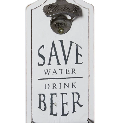 Weathered exterior goes well with vintage, ranch, and farmhouse themes. This item ships in 1 carton. This two-piece wall décor set features a beer bottle opener theme. Wood wall decor makes a great gift for any occasion. Can be hung vertically using the D-rings on the back; nails and screws not included. Suitable for indoor use only. This item ships fully assembled in one piece. This multi colored wall sculptures comes as a set of 2. Farmhouse style. Typography includes “The best beer is an open beer” and “Save water, drink beer”.