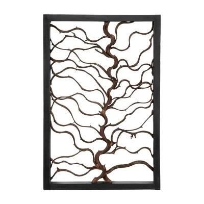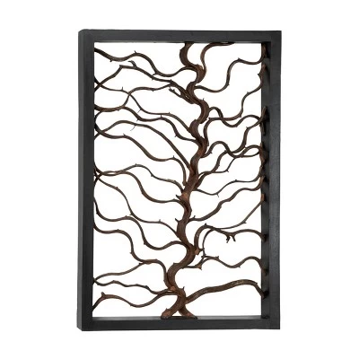 Wood Tree Branch Wall Decor With Black Frame Brown – Olivia & May